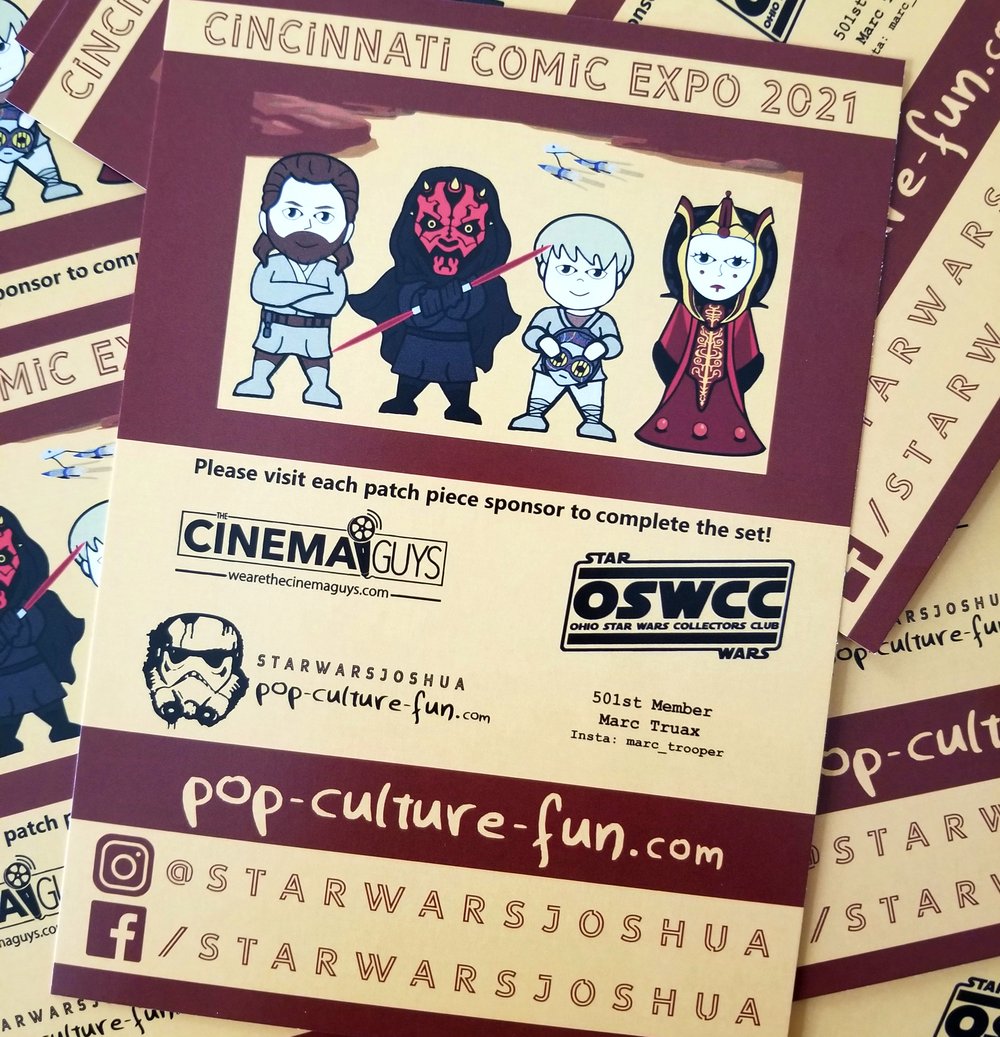 "Episode One" 4-piece puzzle patch set. This exclusive set was created for Cincinnati Comic Expo 2021. Those who attended had a chance to participate in the Official Convention Patch Hunt and visit various vendors to obtain a free patch and attempt to collect all four pieces throughout the weekend!