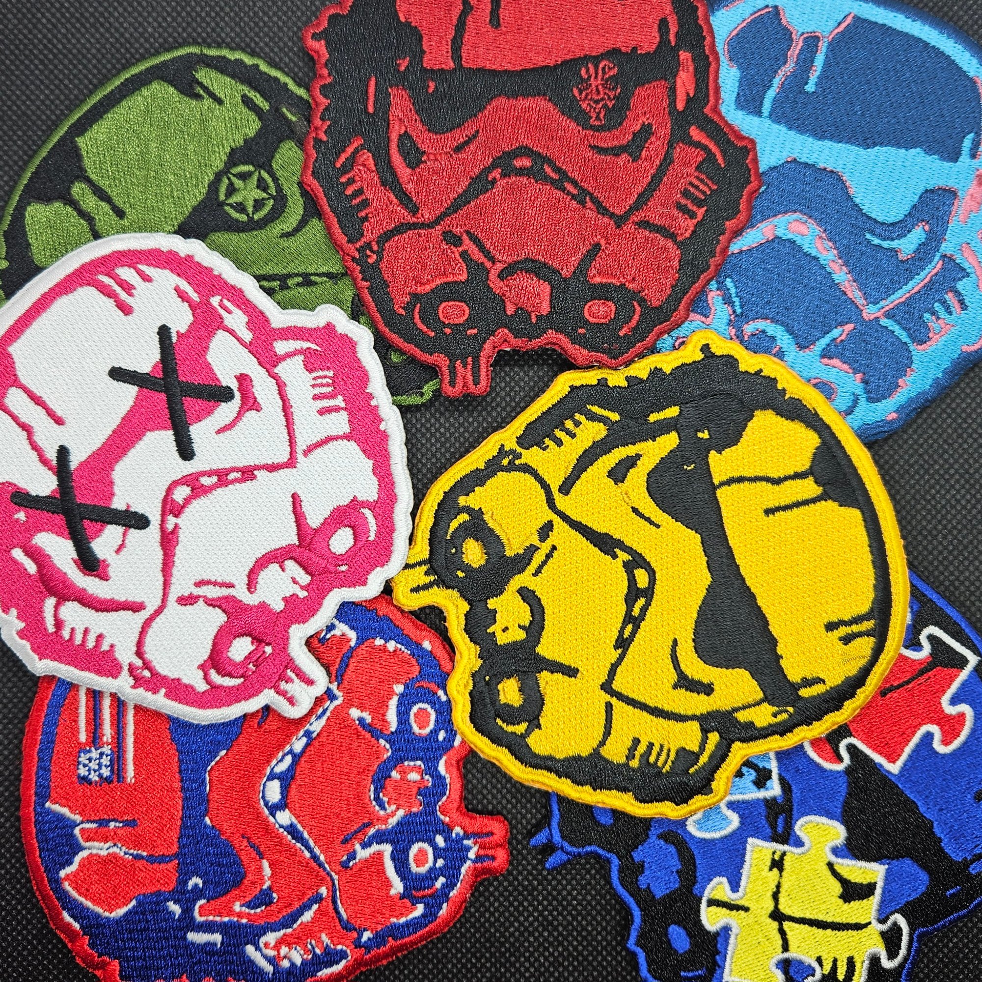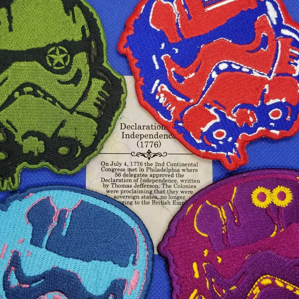 100% embroidery, Velcro backing, 4.5 x 4.5 inches large.